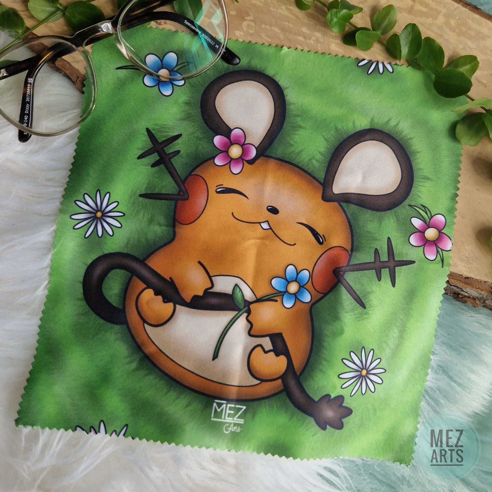 Clean your glasses, phone or tablet in style with this vibrant glasses cloth of the cute Dedenne.