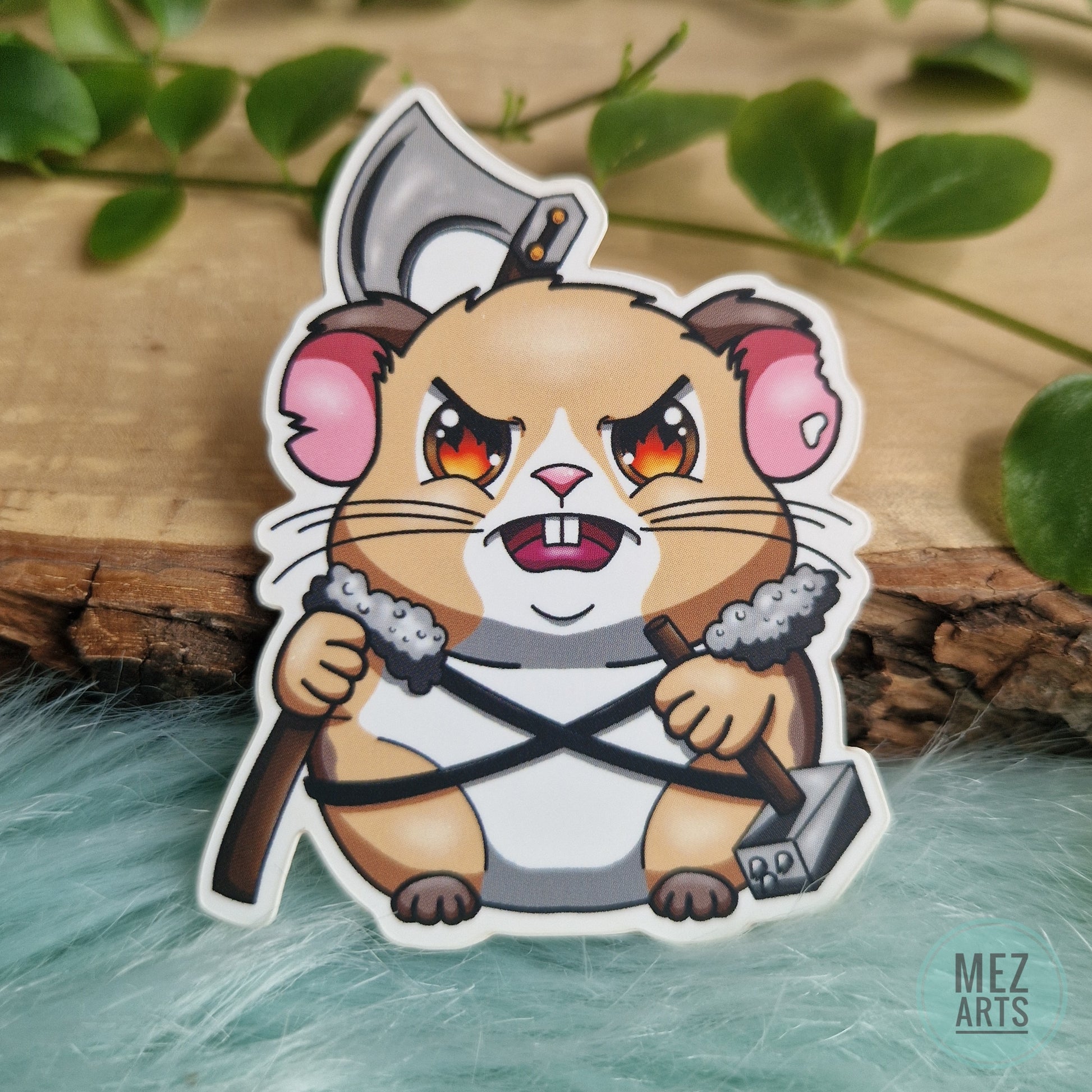 Vibrant sticker of this hamster Barbarian! Perfect gift for a Fantasy loving friend, or just keep it for yourself!