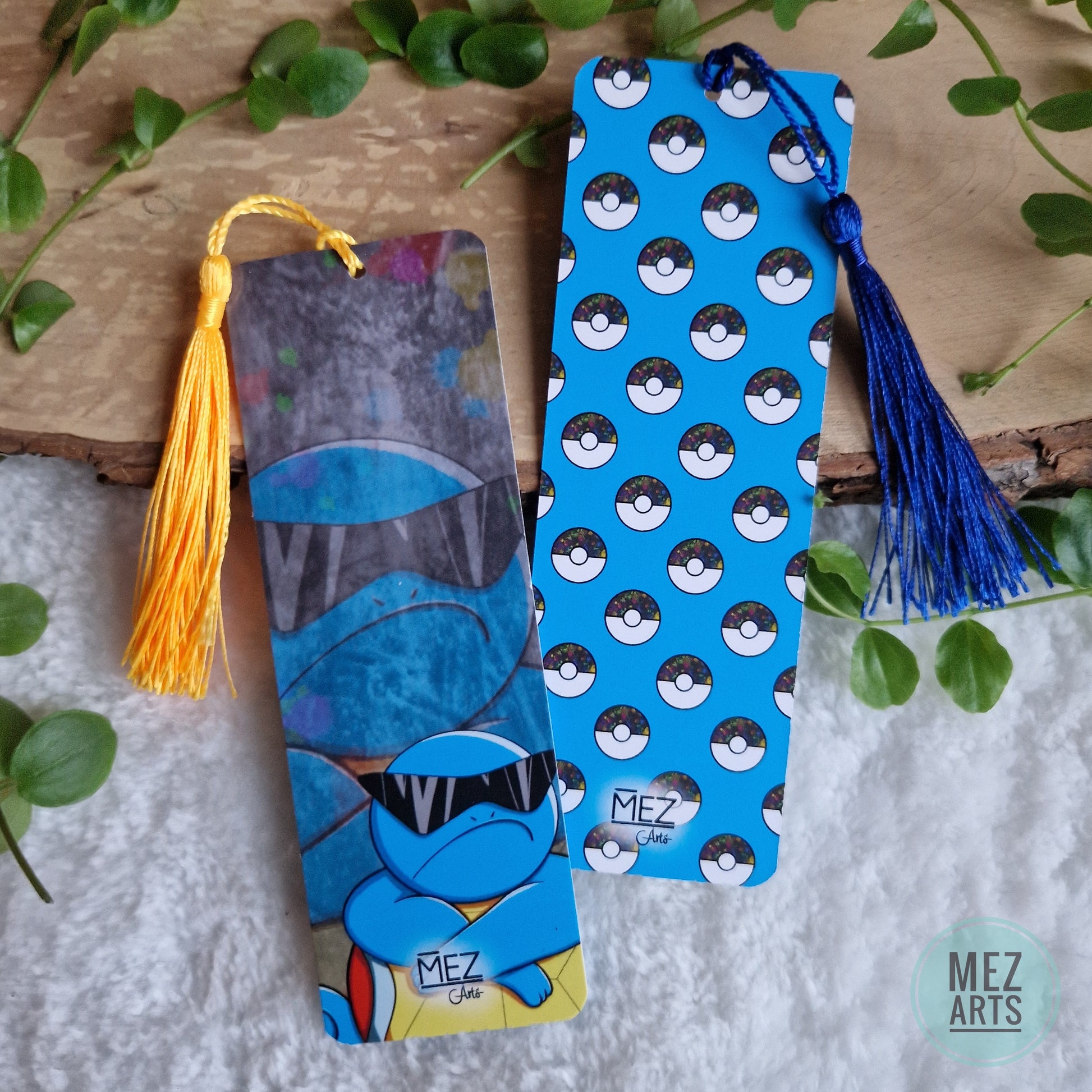Vibrant bookmark of Squirtle squad with tassel. It has two different sides so you can choose which design you want to use today while reading your book!
