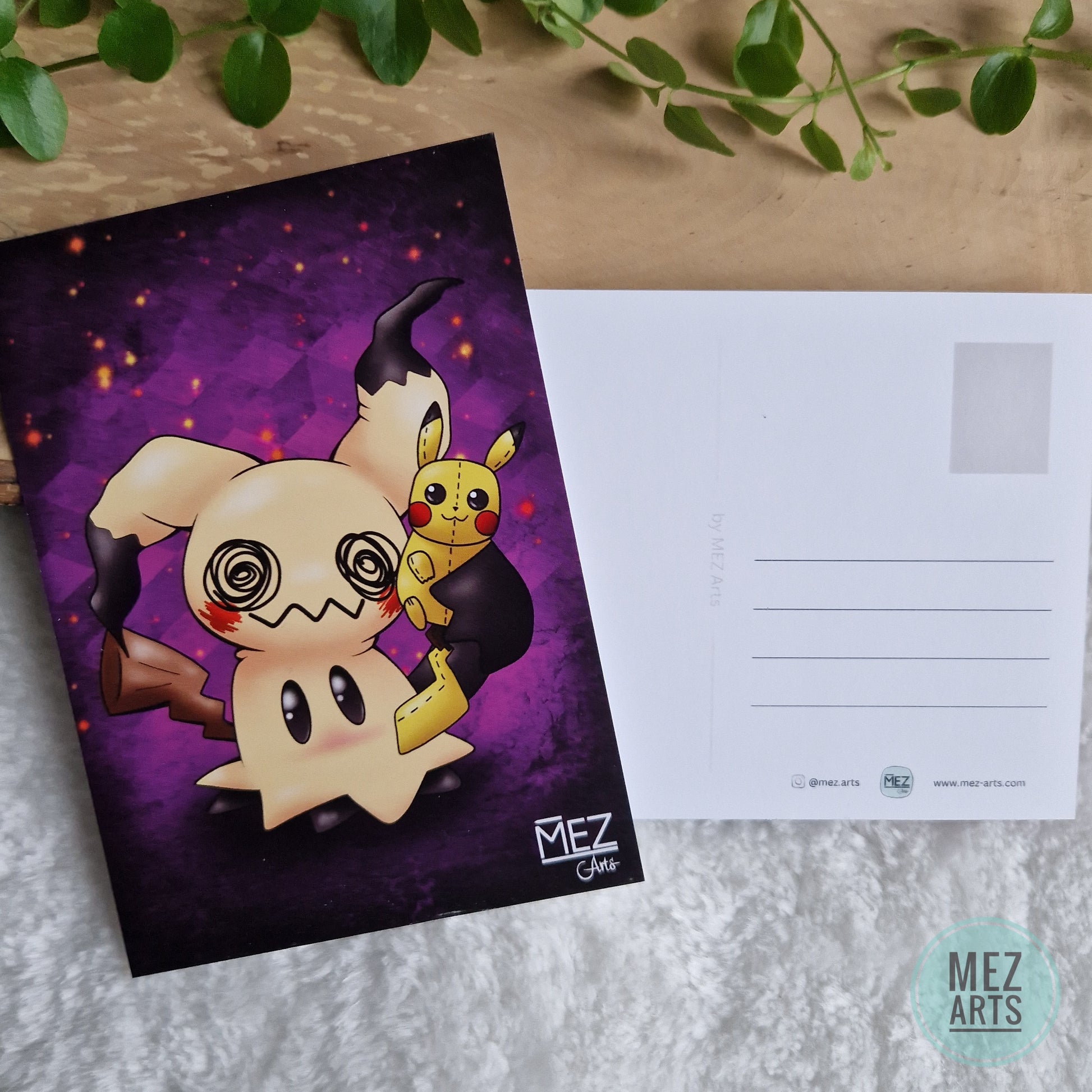 Vibrant postcard of Mimikyu! Use the back to write your message and you can send it as is, or use an envelope. Perfect gift for friends, or just keep it for yourself as an art print!