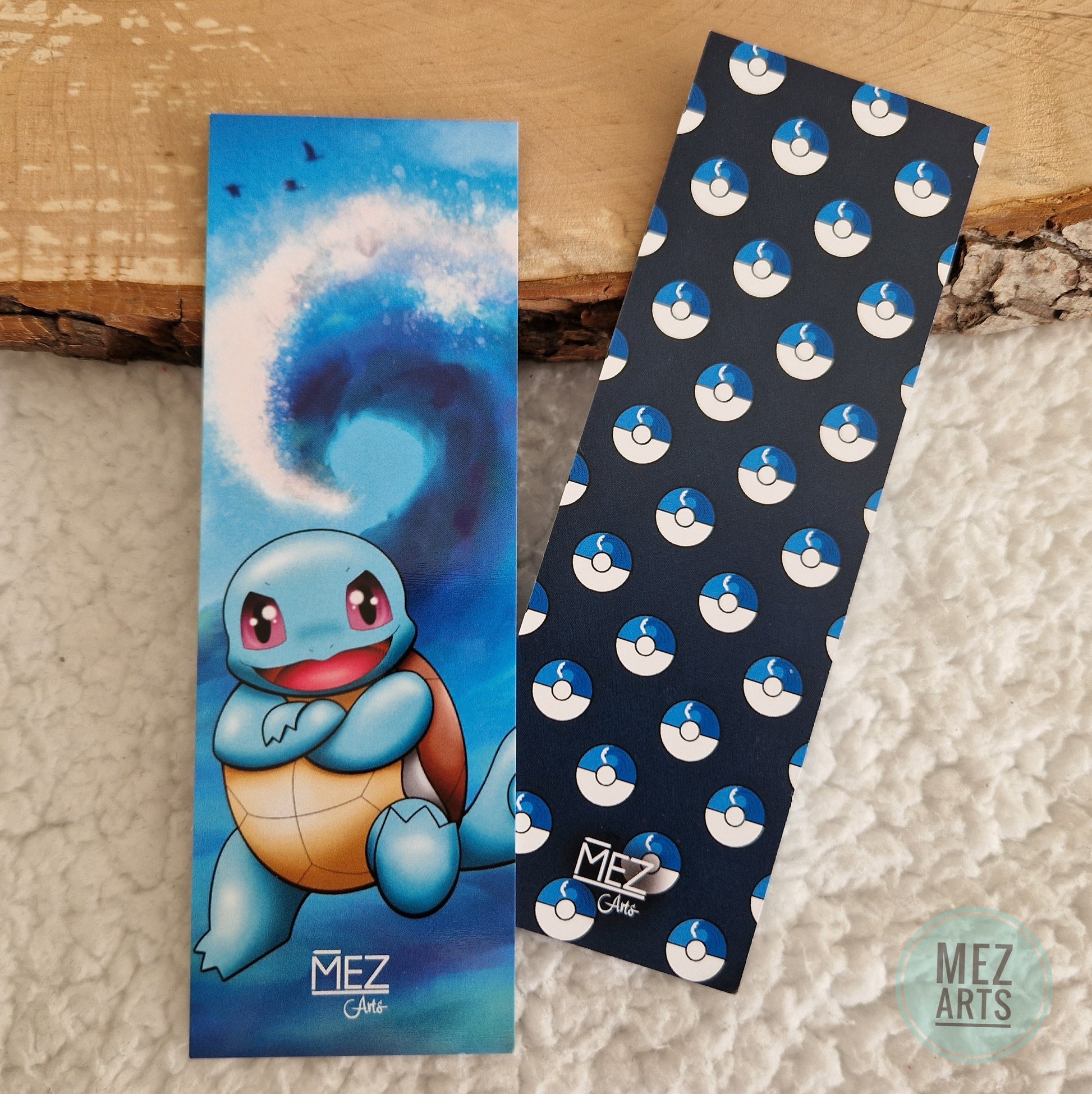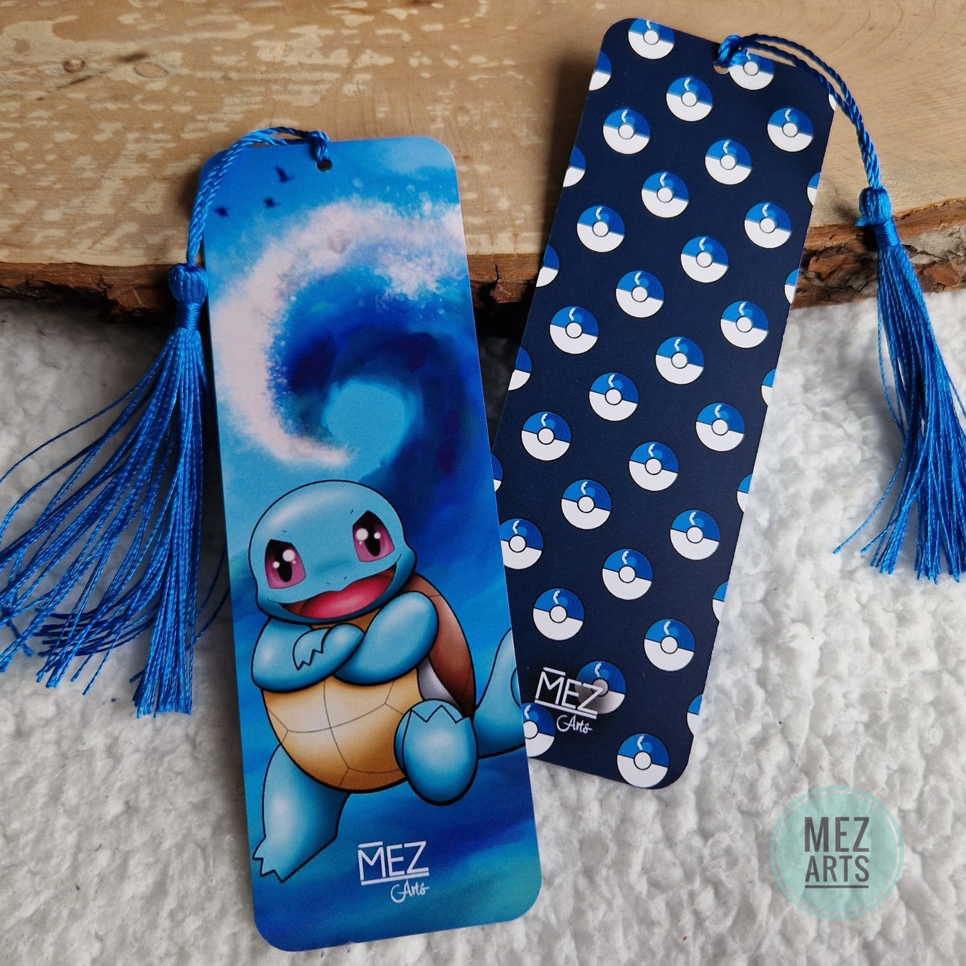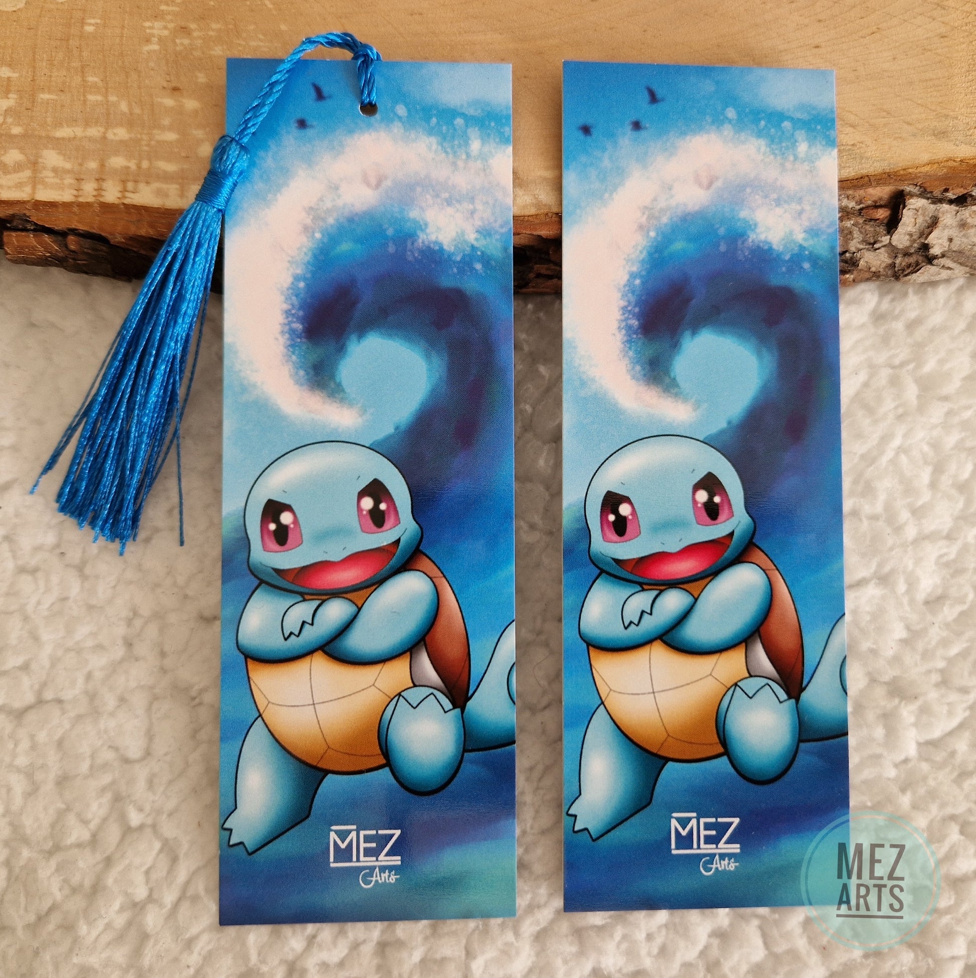 Vibrant Squirtle bookmark with rounded corners and tassel. It has two different sides so you can choose which design you want to use today while reading your book!