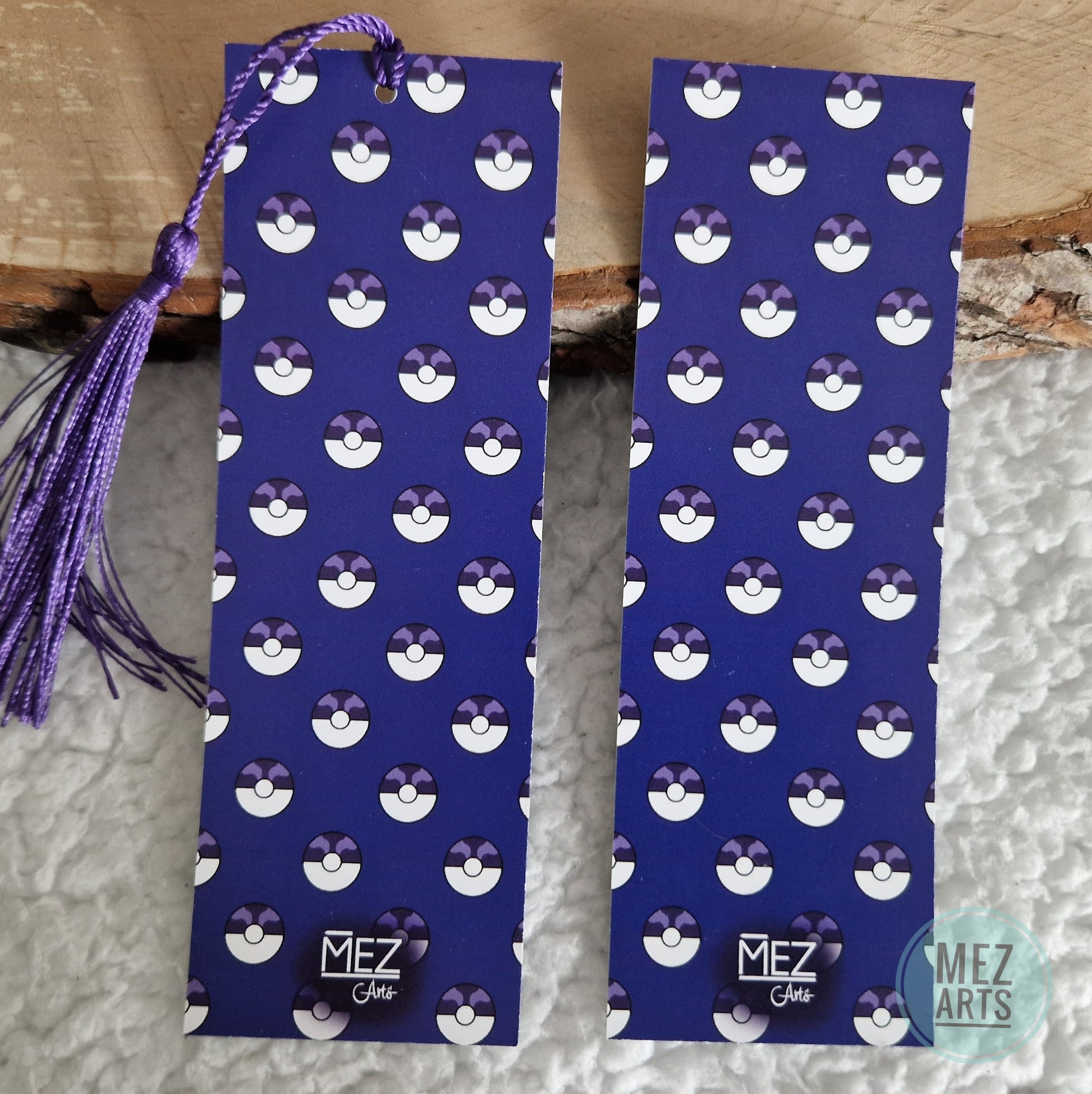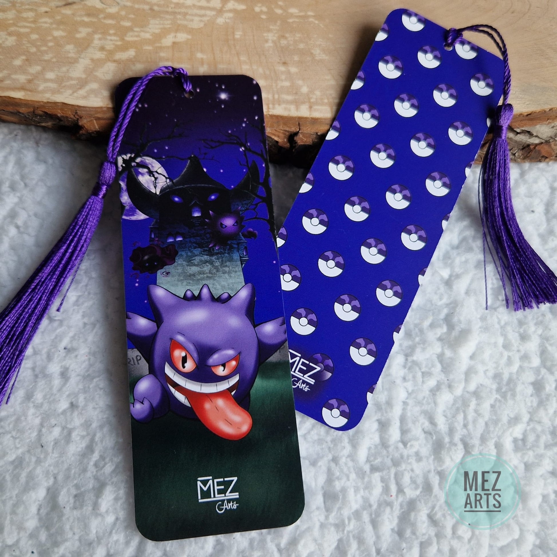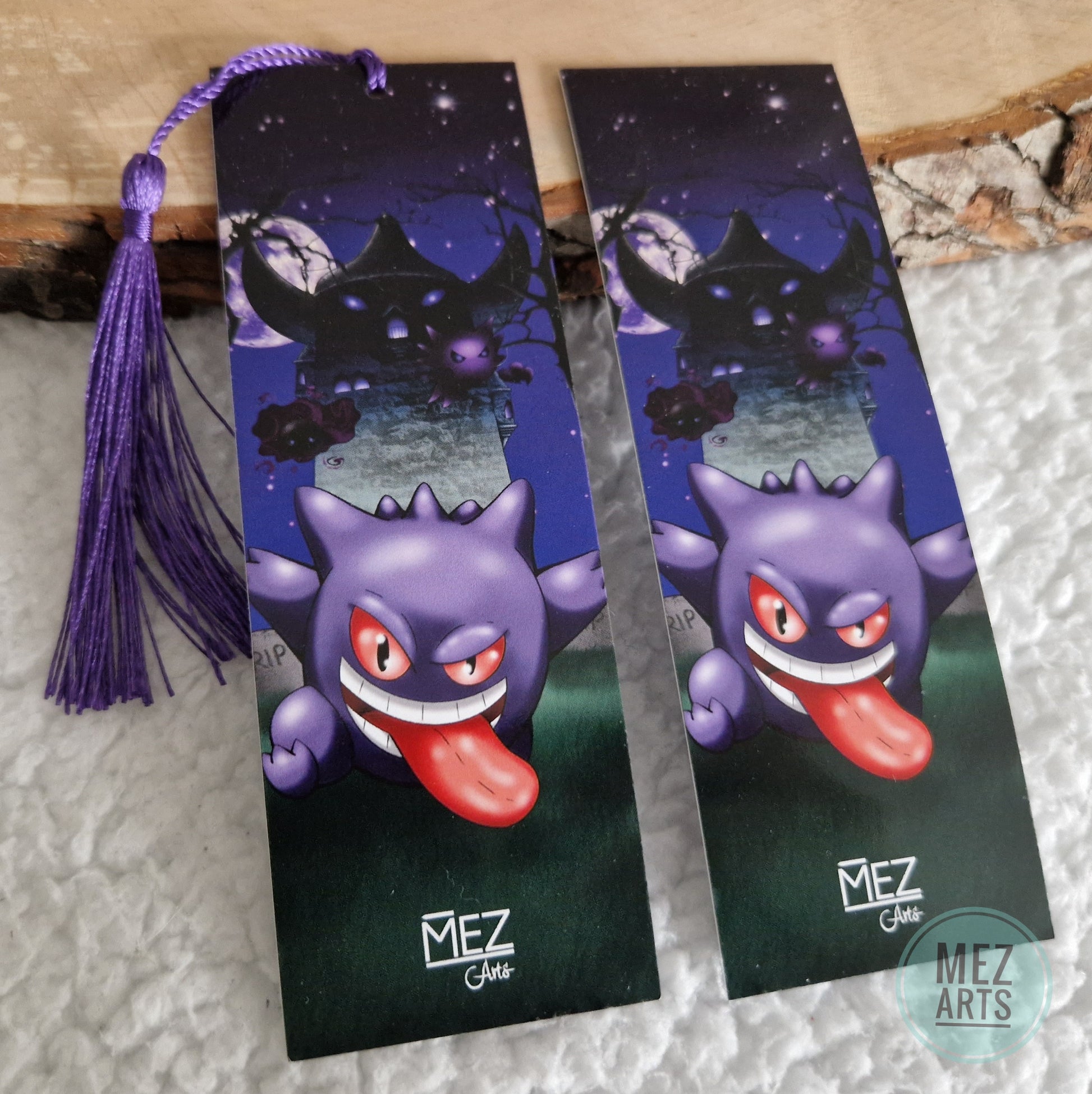 Vibrant bookmark with Gengar, Ghastly and Haunter with rounded corners and a tassel. It has two different sides so you can choose which design you want to use today while reading your book!