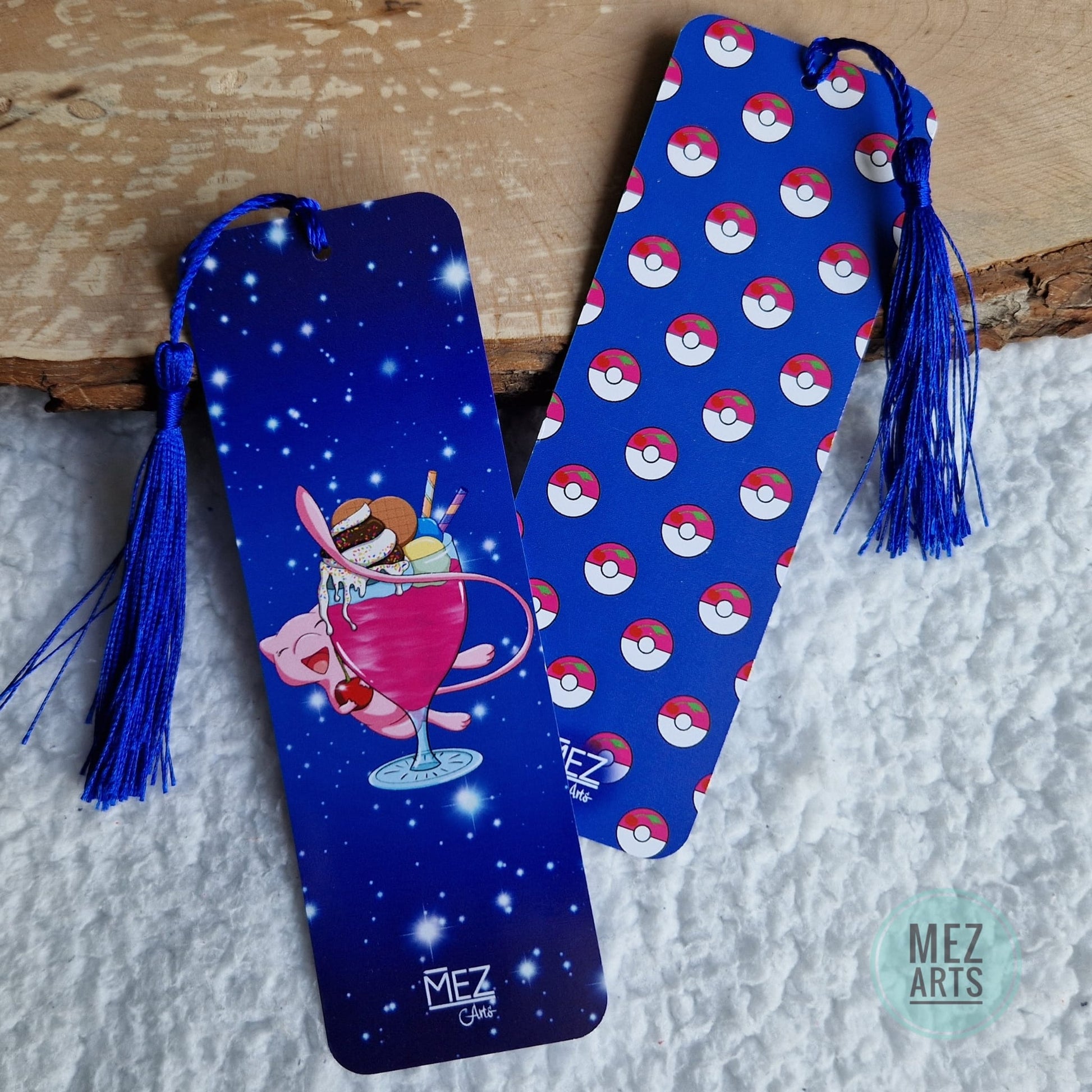 Vibrant Mew bookmark with or without tassel. It has two different sides so you can choose which design you want to use today while reading your book!
