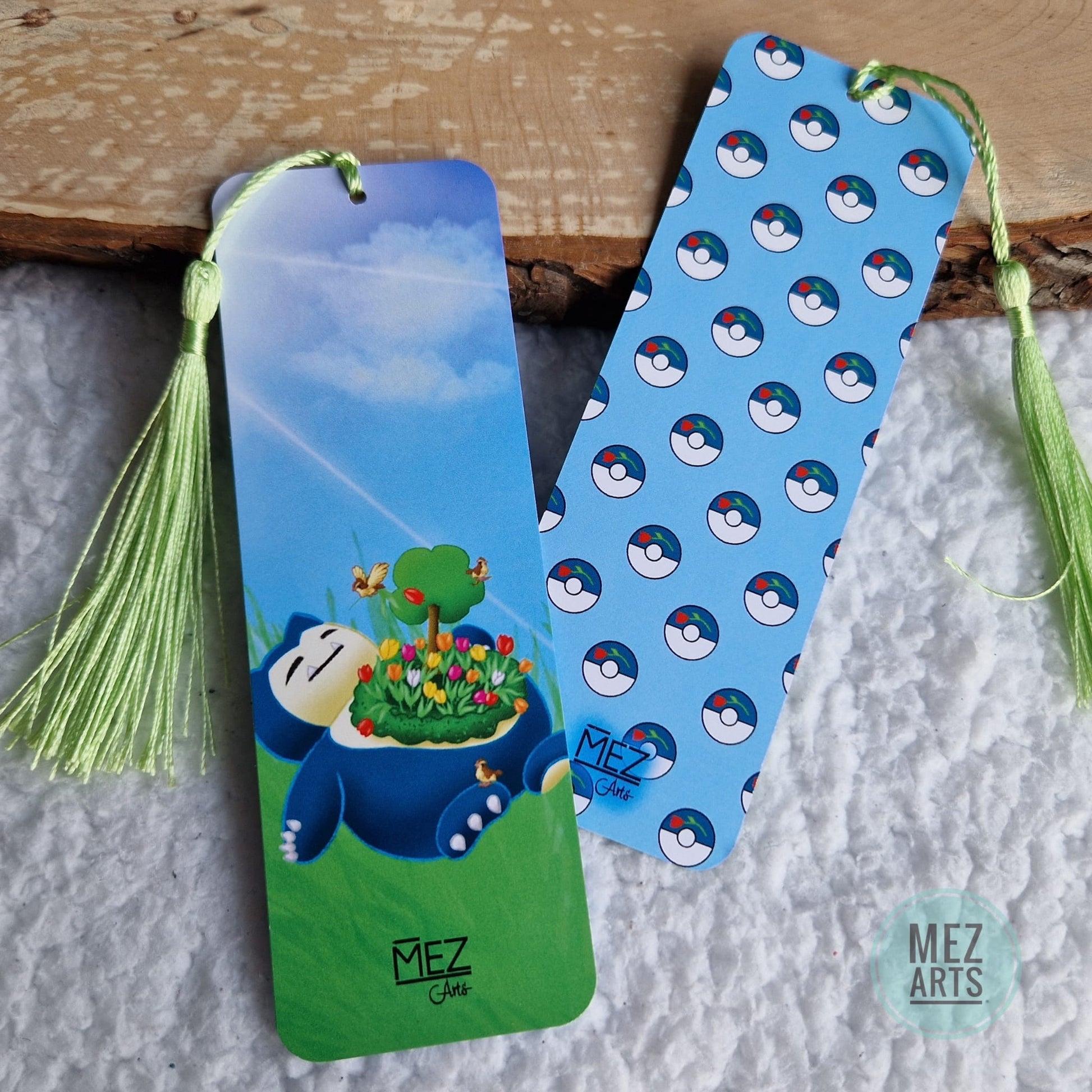 Vibrant Snorlax bookmark with or without tassel. It has two different sides so you can choose which design you want to use today while reading your book!