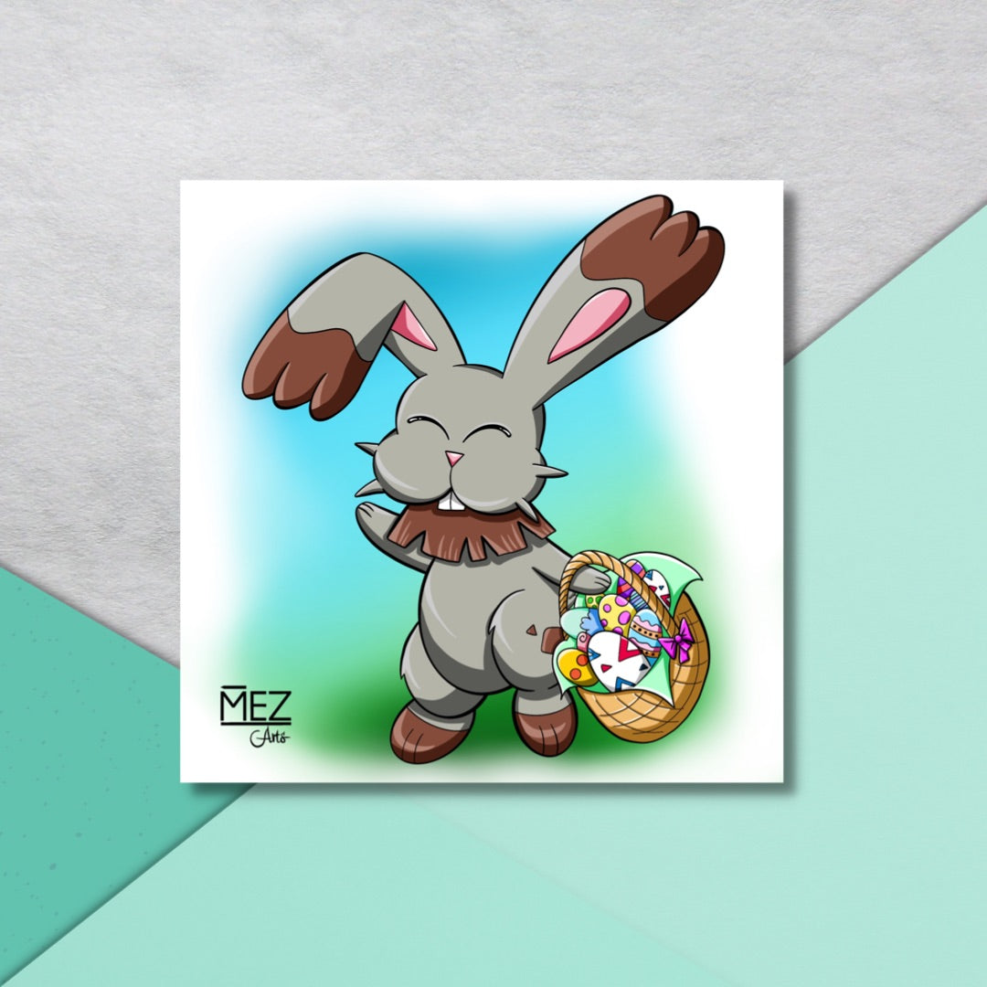 Vibrant digital drawing of the cute Bunnelby with a basket of eggs.