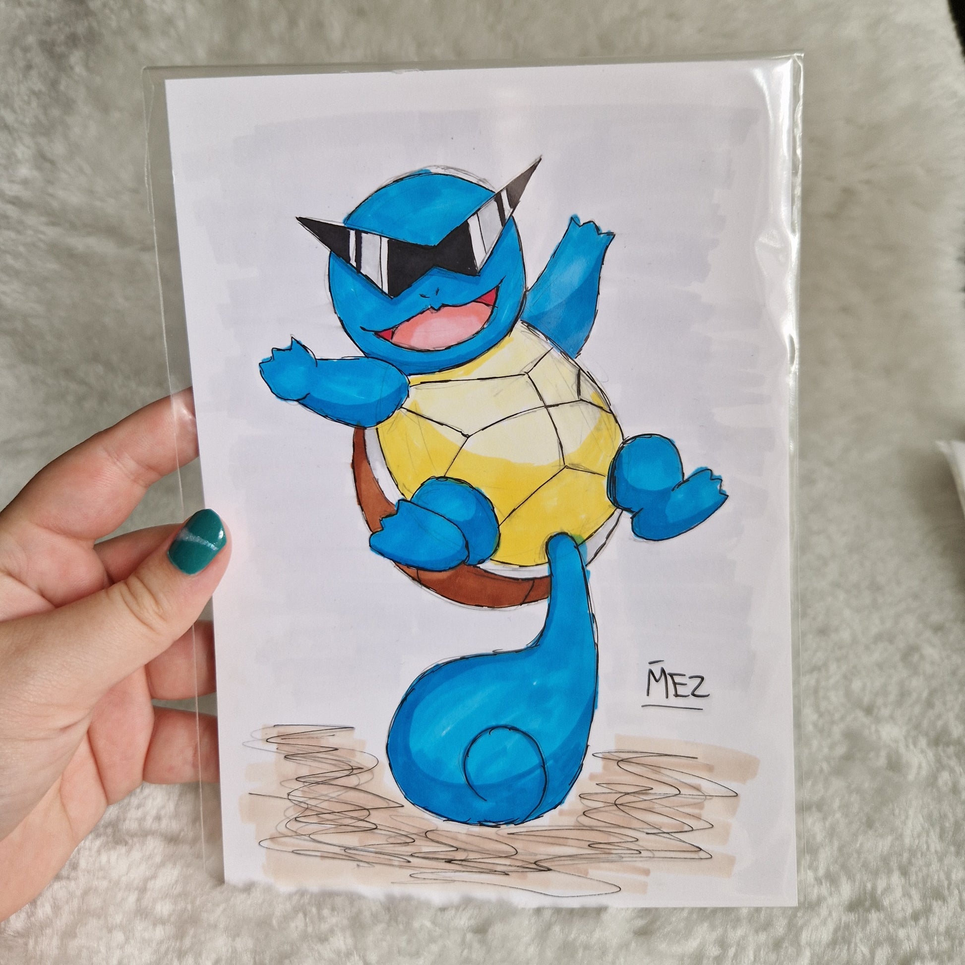 Squirtle original sketch. Made with Sakura brush pens and Promarker alcohol markers. Perfect gift for a Pokemon loving friend, or just keep it for yourself to decorate your rooms!