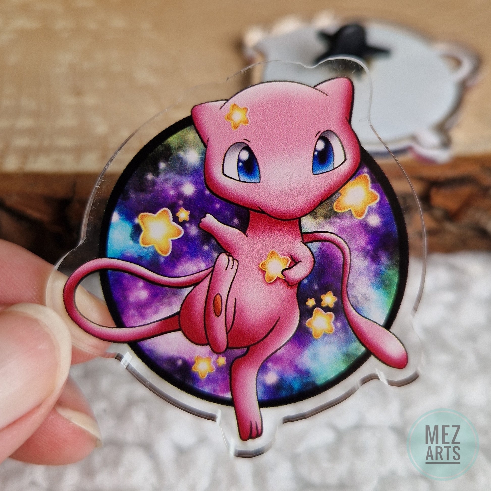 Vibrant pin of Mew! A fun accessory for on your bag or jacket, so you can take your favourite everywhere you go. Perfect gift for friends, or just keep it for yourself!