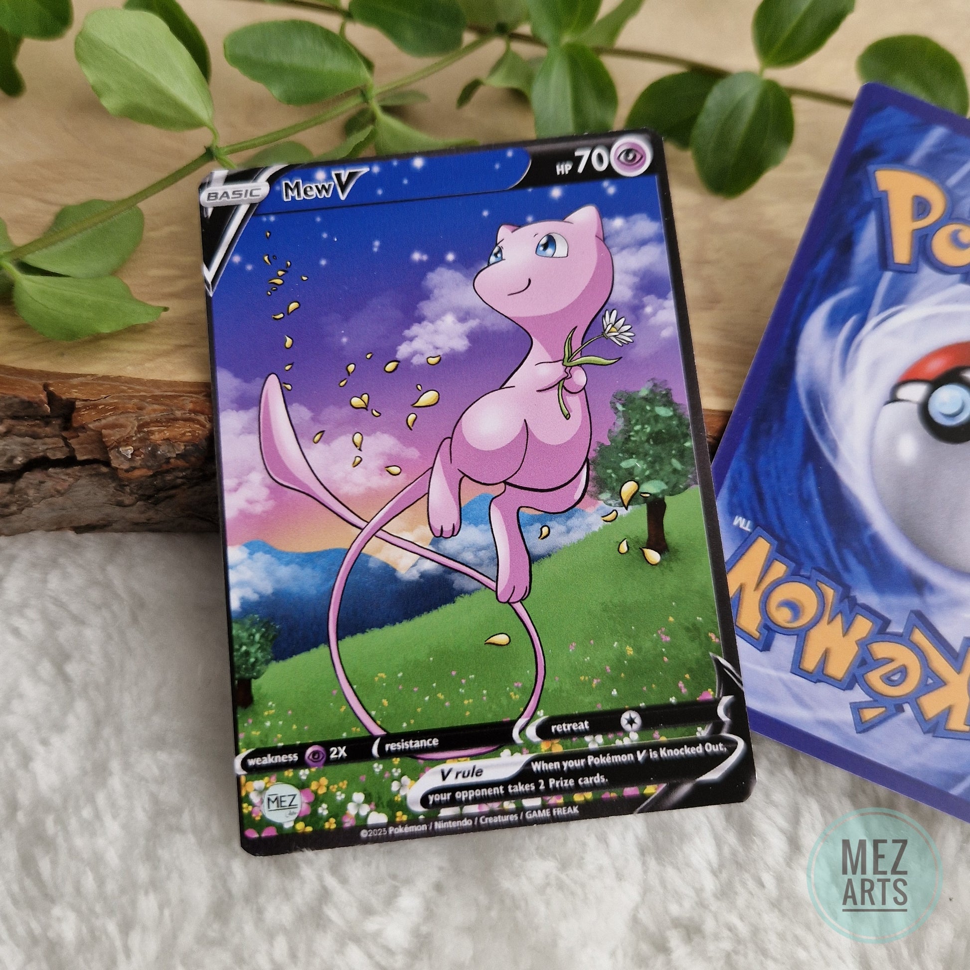 Vibrant digital drawing of the legendary Mew, made into a card.