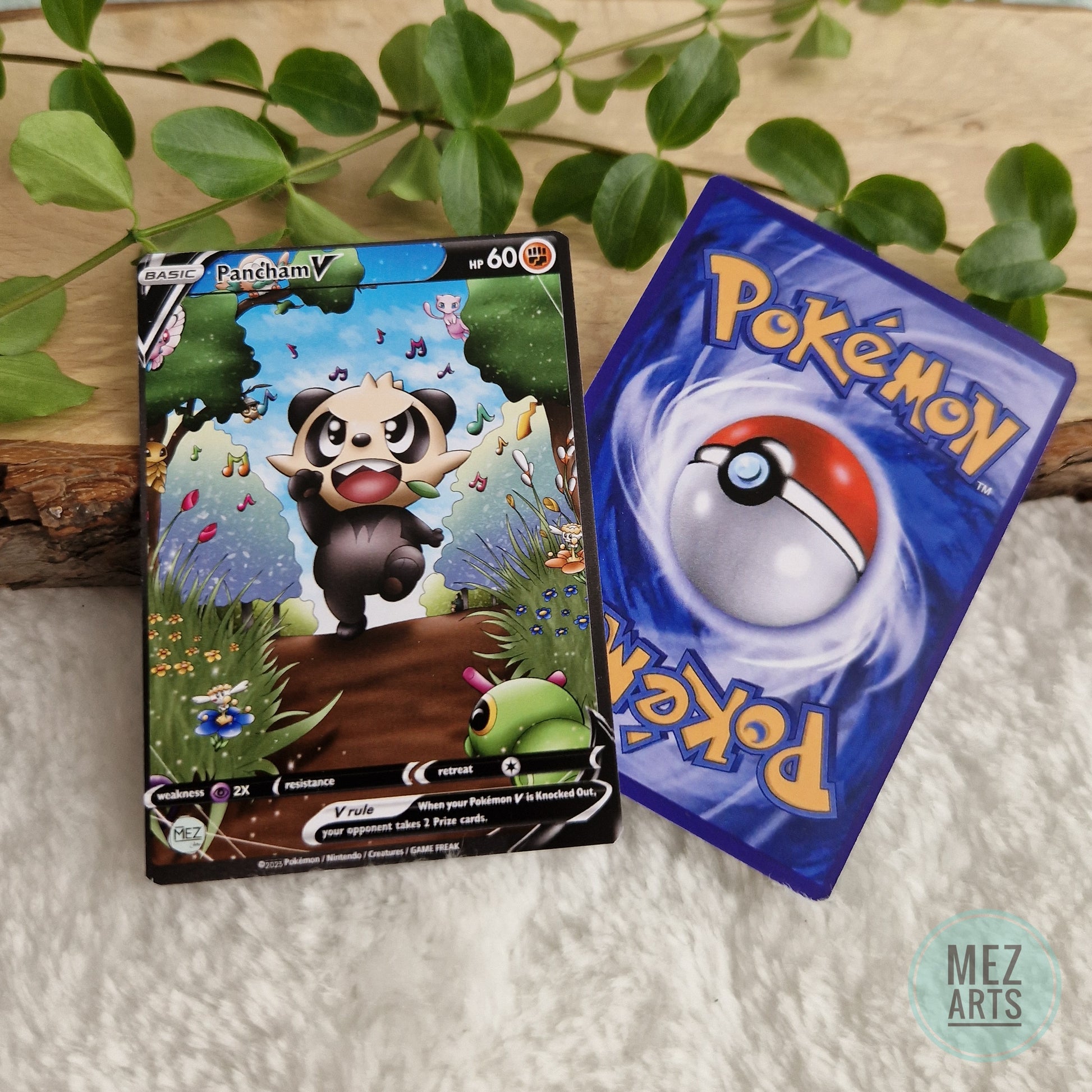 Vibrant digital drawing of the cute Pancham with friends, made into a card.