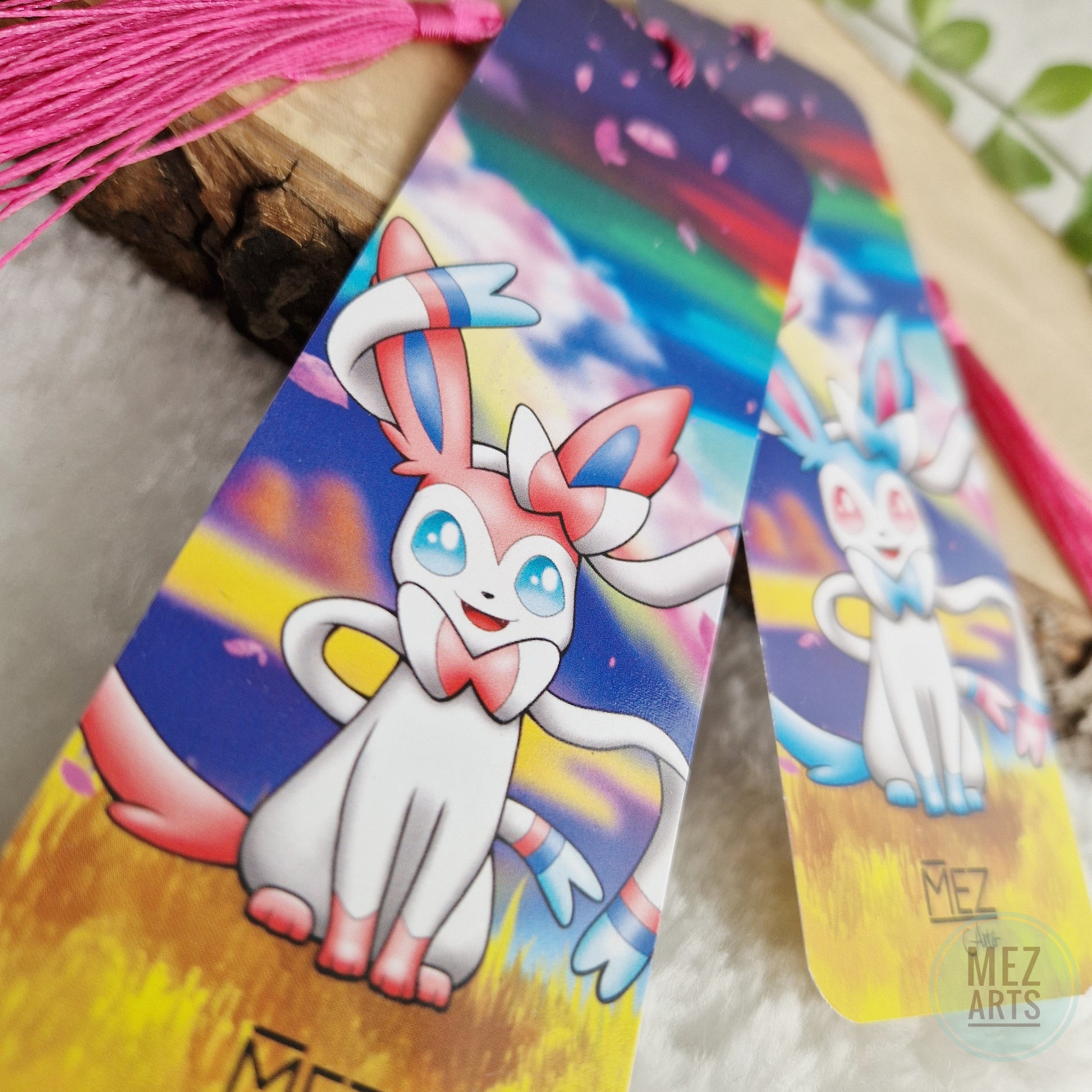 Vibrant Sylveon bookmark with tassel. It has two different sides so you can choose which design you want to use today while reading your book!