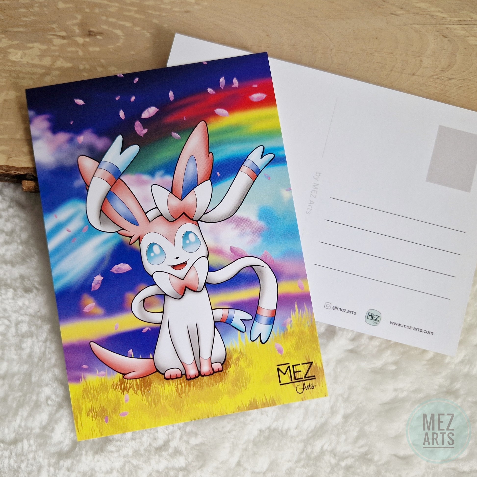 Vibrant postcard of Sylveon! Use the back to write your message and you can send it as is, or use an envelope. Perfect gift for friends, or just keep it for yourself as an art print!