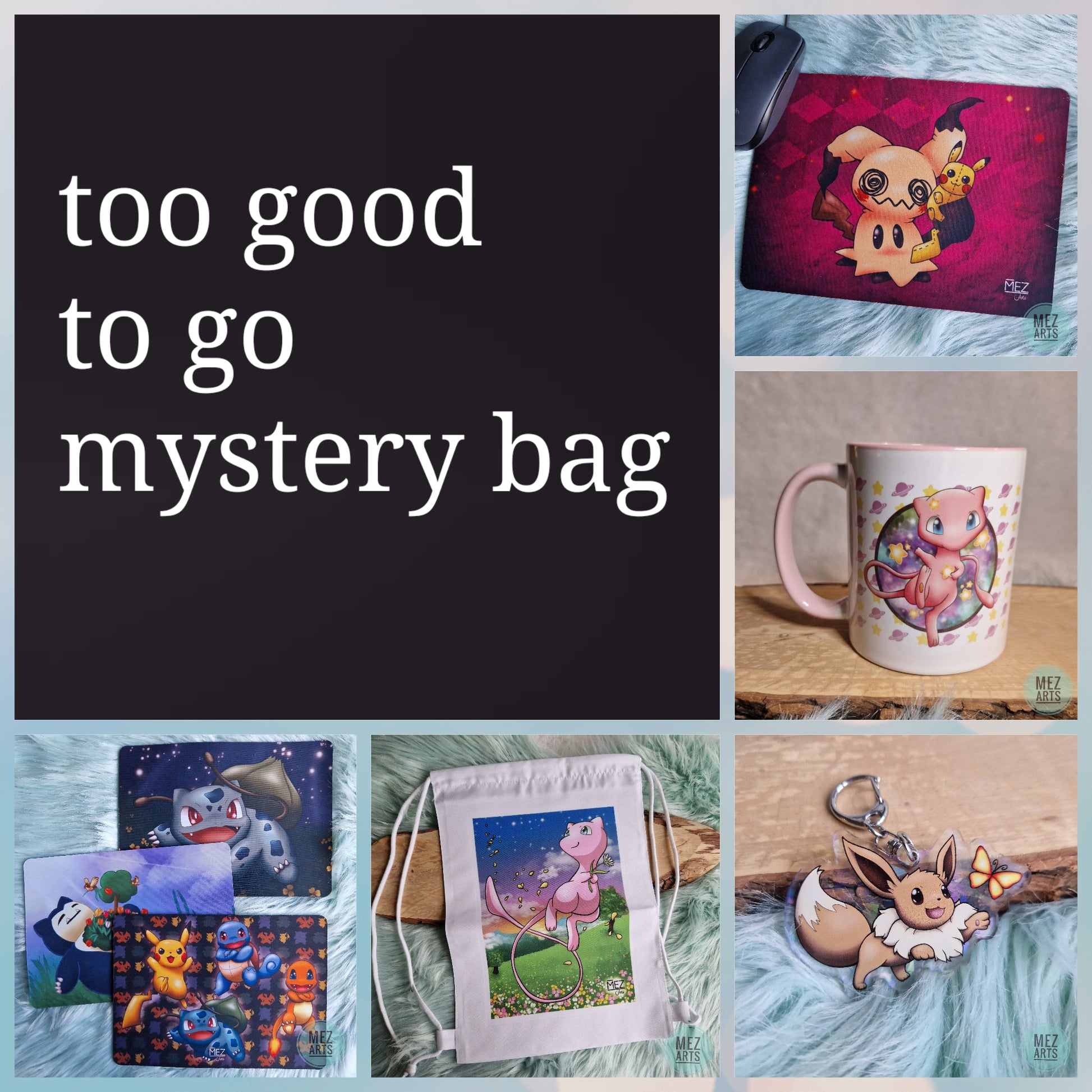 A mystery bag with lots of 'too good to go' goodies from MEZ Arts! May contain items such as bookmarks, postcards, buttons, stickers and more!