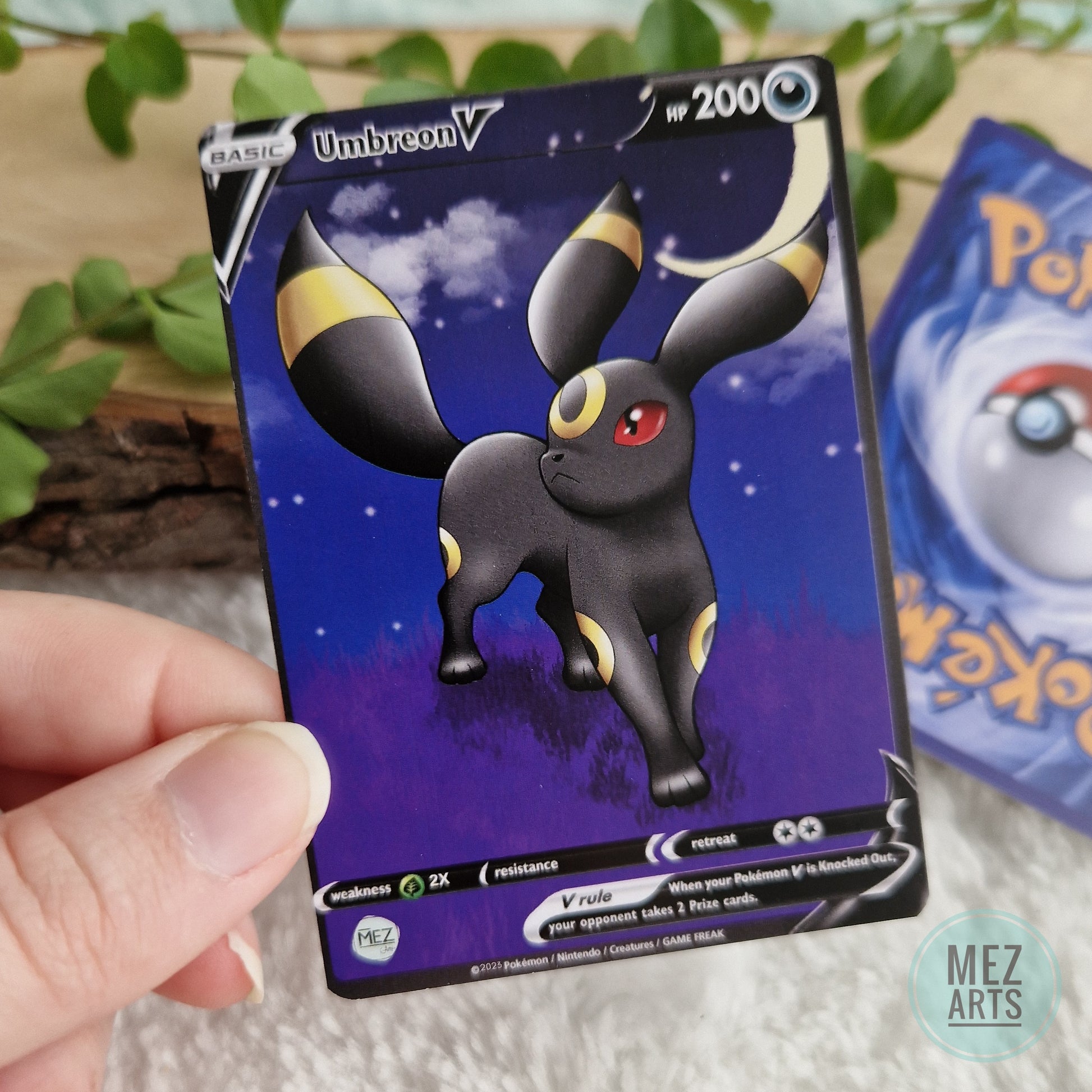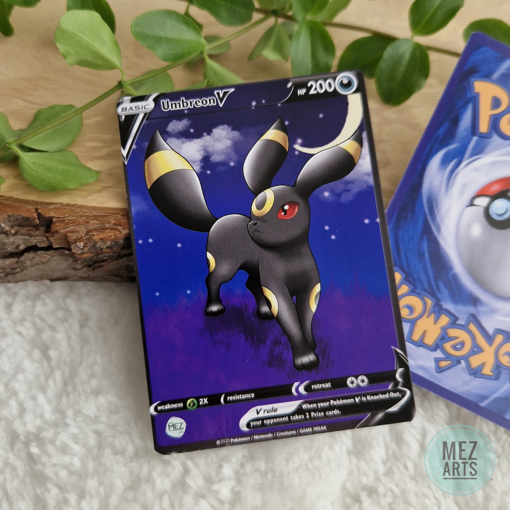 Vibrant digital drawing of the populair Umbreon, made into a card.